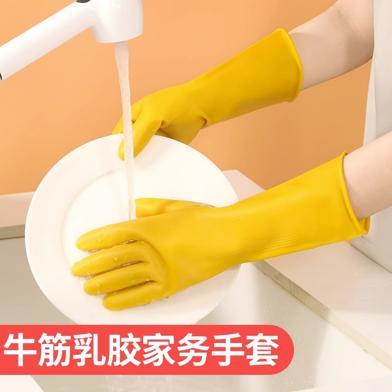 加厚橡胶牛筋乳胶手套家务女手套洗碗清洁家用干活洗衣服乳胶耐磨