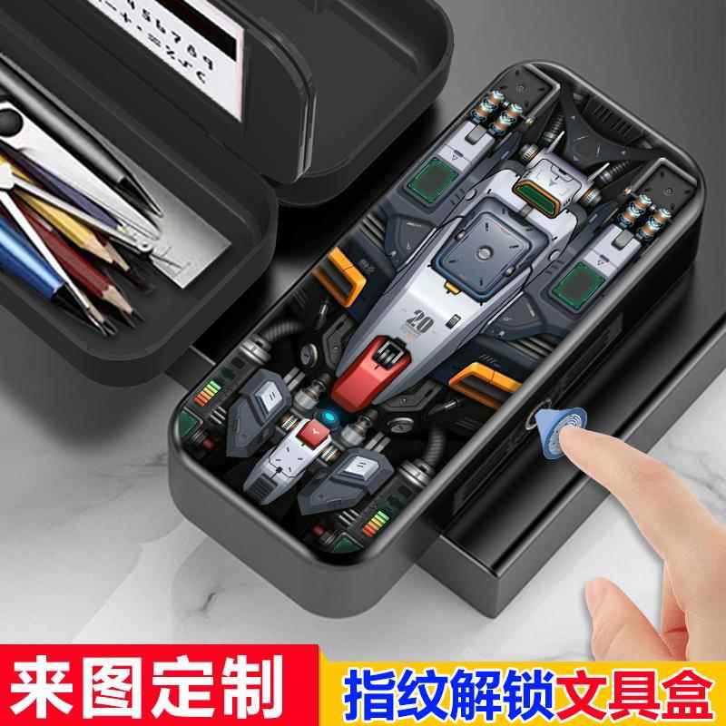 未来科技风指纹文具盒小学生新款男孩密码锁多功能铅笔盒大容量女