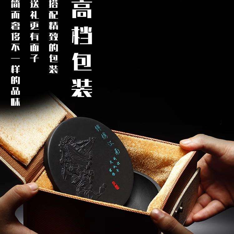 ?歙砚带盖砚台书法不干墨砚池天然原石料初学者储墨汁文房四宝