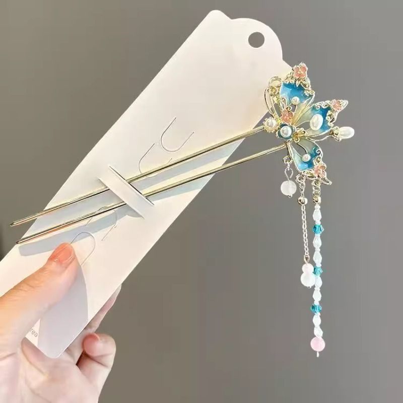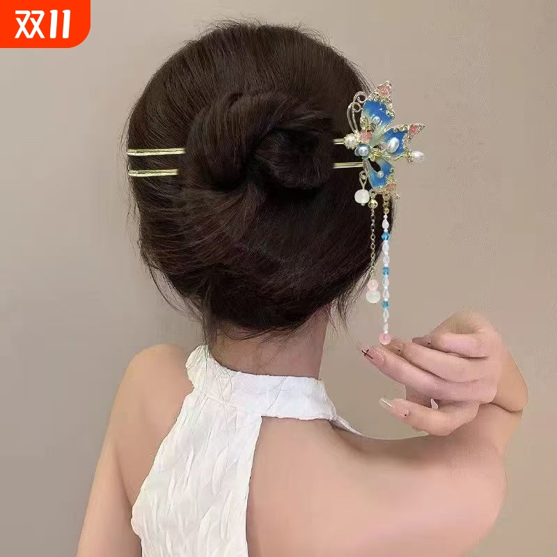 精致中式蝴蝶流苏发簪女新款古风步摇流苏盘发簪子日常高级感发钗