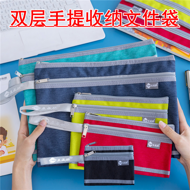 多规格文件袋双层手提收纳文件袋加厚拉链袋A4大号收纳袋孕检产检袋A5中号小号资料袋票据袋迷你卡片袋B8/A6