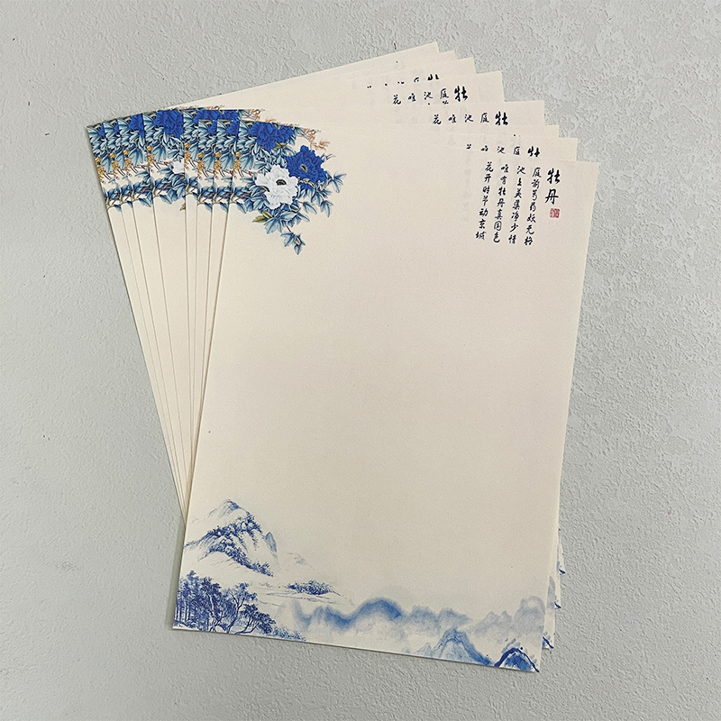 40张中国风信纸创意水墨风信笺牡丹桂花樱花好看B5可书写可打印
