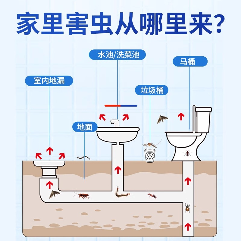 下水道小飞虫灭杀神器管道疏通除虫卫生间厕所蛾蠓蟑螂地漏杀虫剂