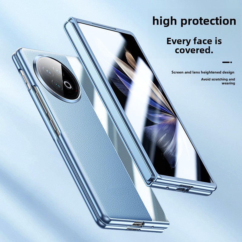 适用于Vivoxfoldable2手机外壳可折叠70%堆叠屏幕全包防摔Vivo X Fold3新保护套Vivoxflod3Pro电镀皮革活折叠