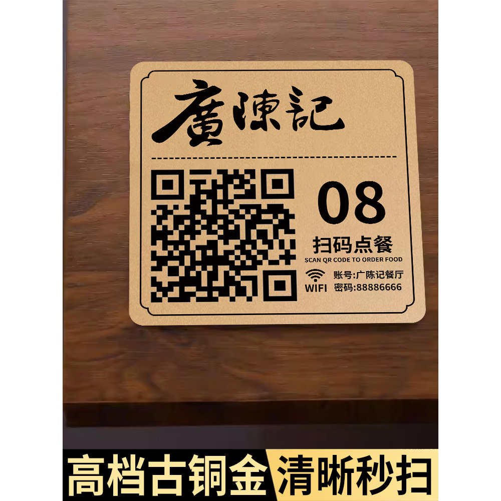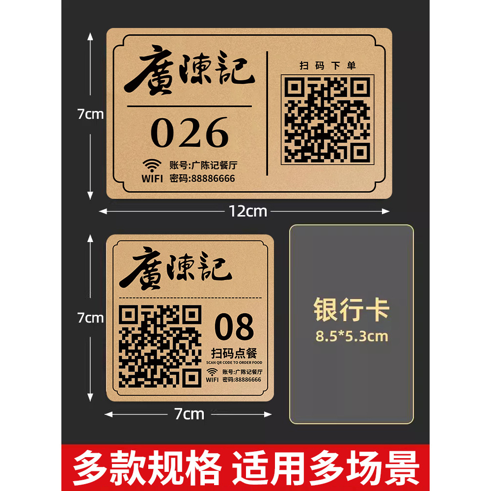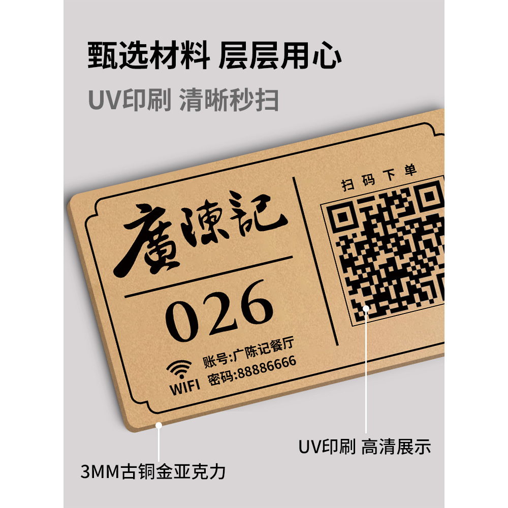 扫码点餐二维码桌贴展示牌餐厅饭店亚克力扫码点单扫一扫下单点餐码设计制作桌面点菜牌桌贴标识牌桌号牌定制