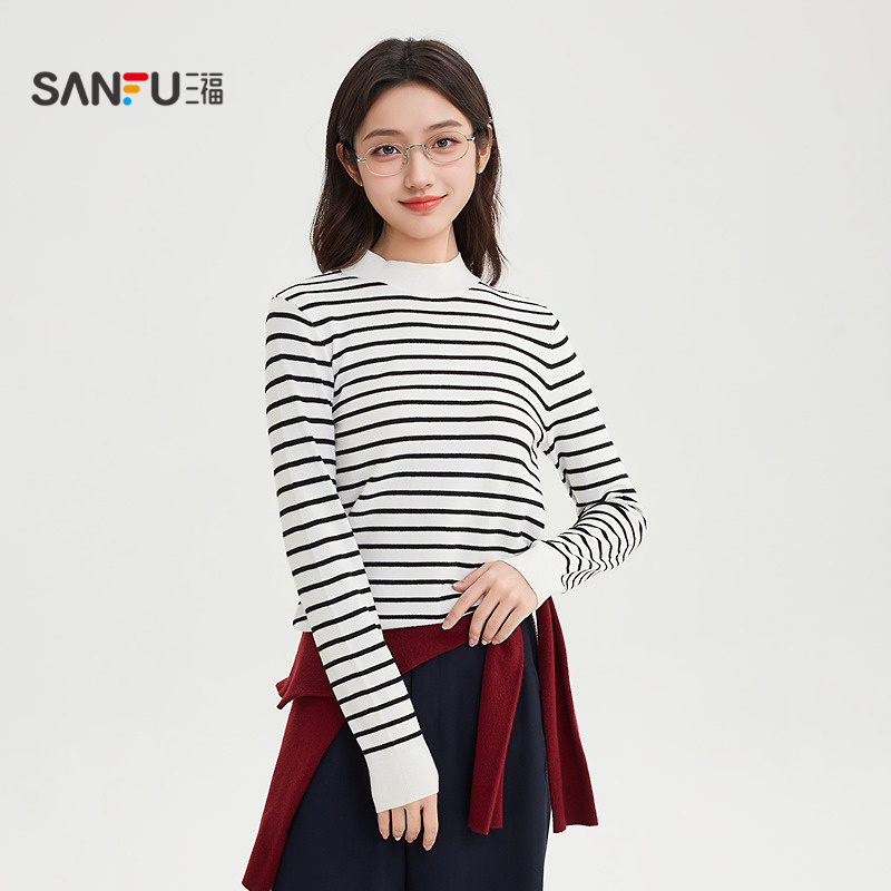 三福打底衫2025新款冬季小中领内搭针织衫简约纯色上衣女装509833