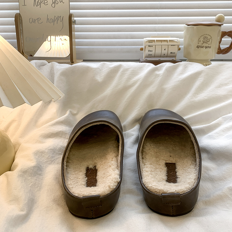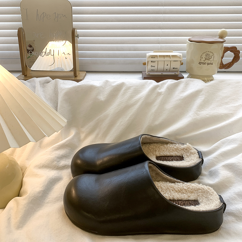 防水包头半拖鞋女秋冬外穿2025新款加绒百搭一脚蹬厚底勃肯棉拖鞋