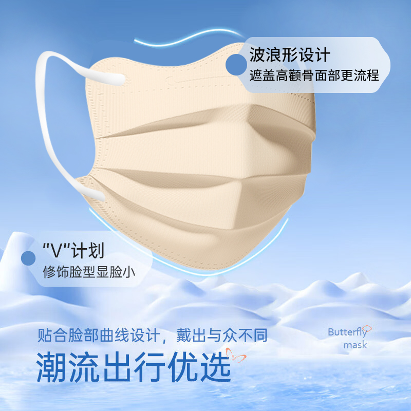 一次性口罩医疗蝶形医用外科正品白色夏季薄款女高颜值波浪显脸小
