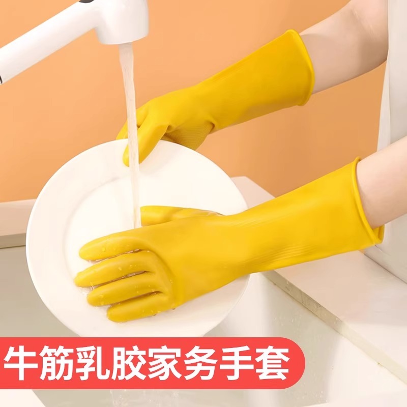 加厚牛筋洗碗乳胶皮手套家务清洁防水耐用橡胶洗衣服洗车手套批发