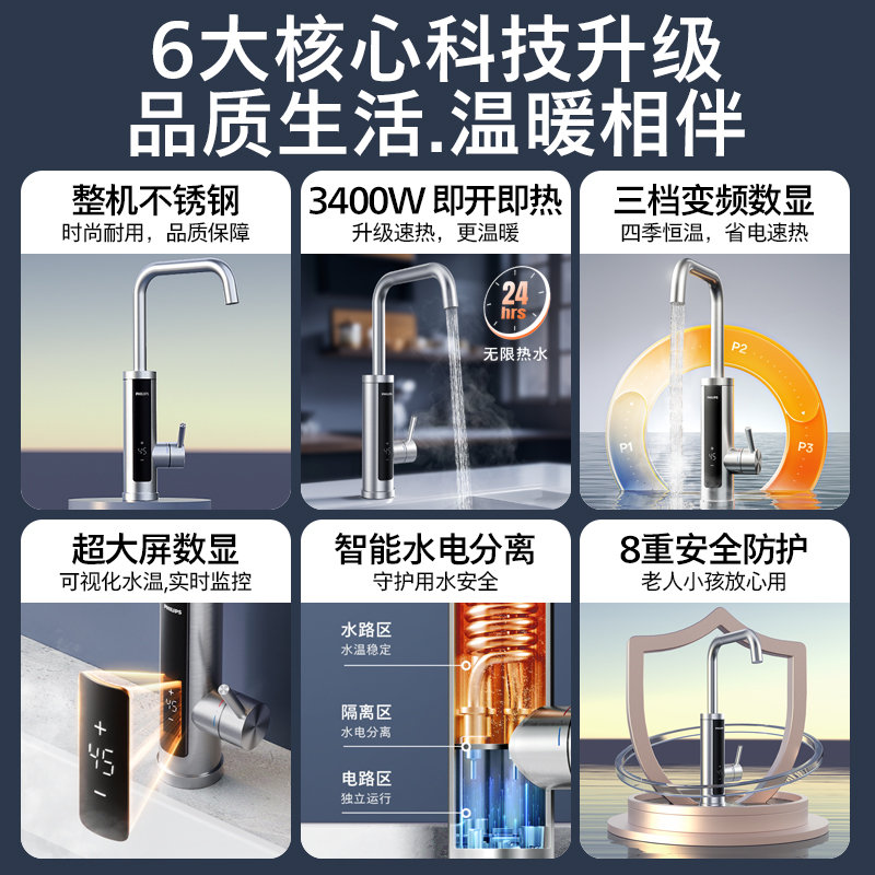 飞利浦即热式电热水水龙头厨房卫生间速热水龙头加热器热水器