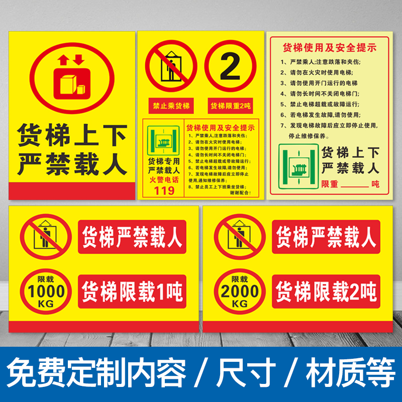 货梯标识牌货运电梯禁止乘人电梯升降提示标识告知卡限重限载标识提示货运电梯禁止人员乘坐贴纸安全标识贴