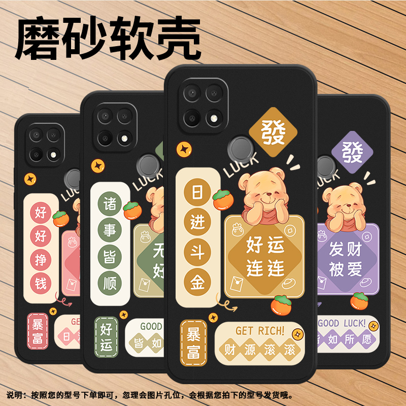 适用OPPOA15手机壳A16s保护壳A15s全包边A16磨砂壳好运连连4G时尚CPH2271万事如意日渐富有皆如所愿发搞钱要