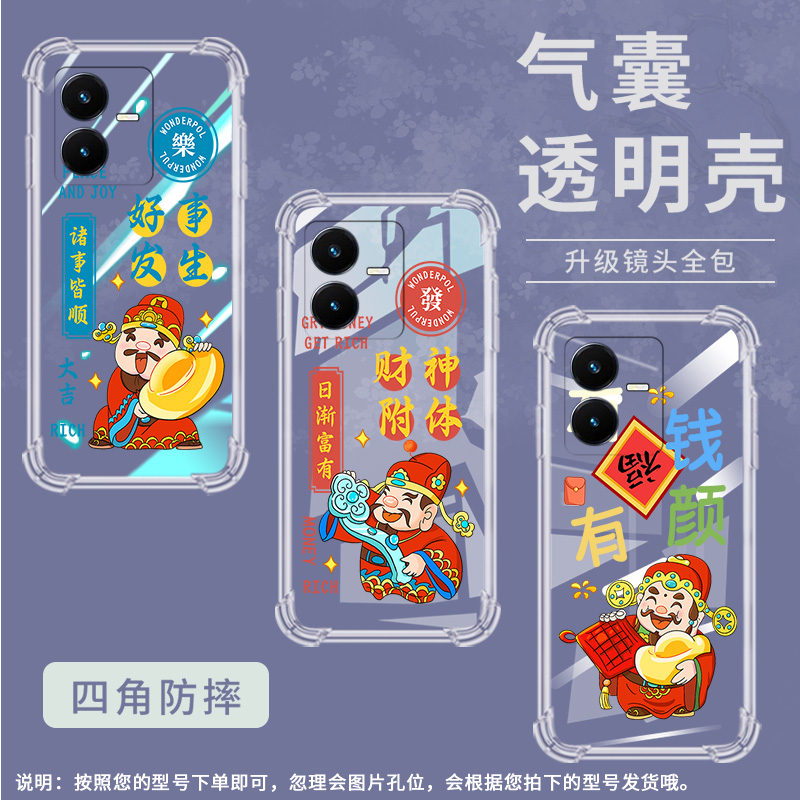 适用vivoY22气囊壳Y22s手机壳Y27保护壳G国外版撞色日渐富有八方来财好事发生个性时尚潮流硅胶潮流