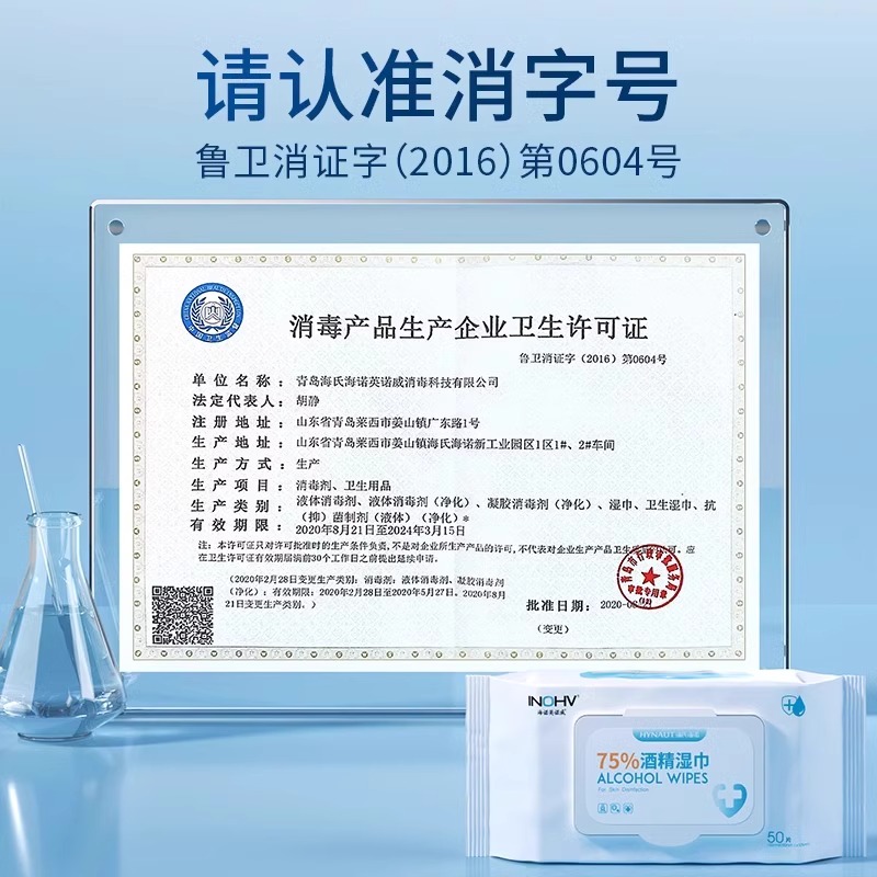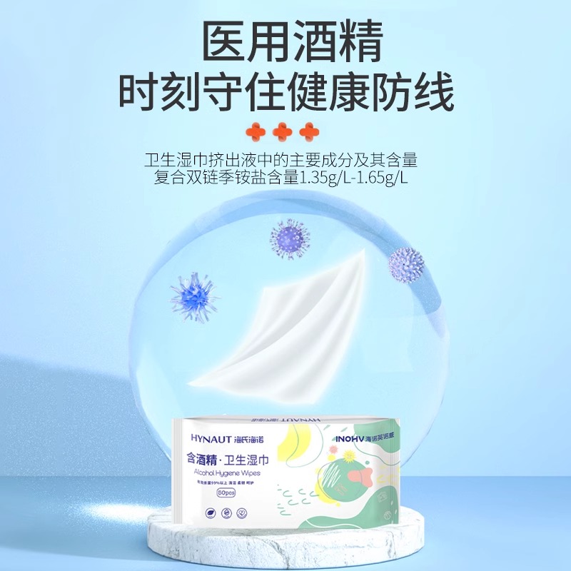 海氏海诺含酒精湿巾医用家用皮肤清洁杀菌消毒大号便携50抽卫生