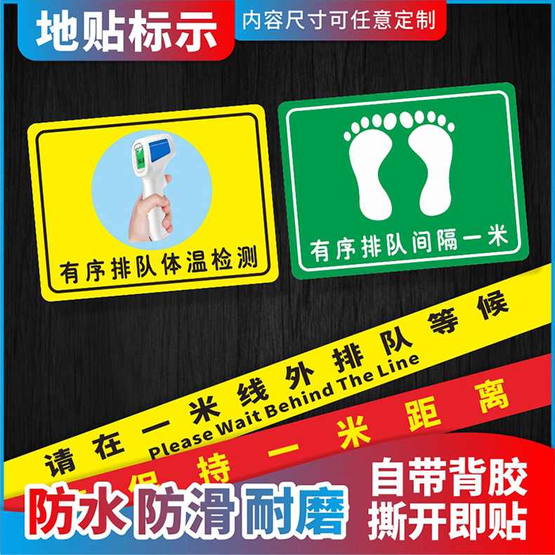 疫情防水磨砂地贴有序排队间隔一米体温检测等候区请在此线外等候依次排队安检清洁区危险区域测温点防疫