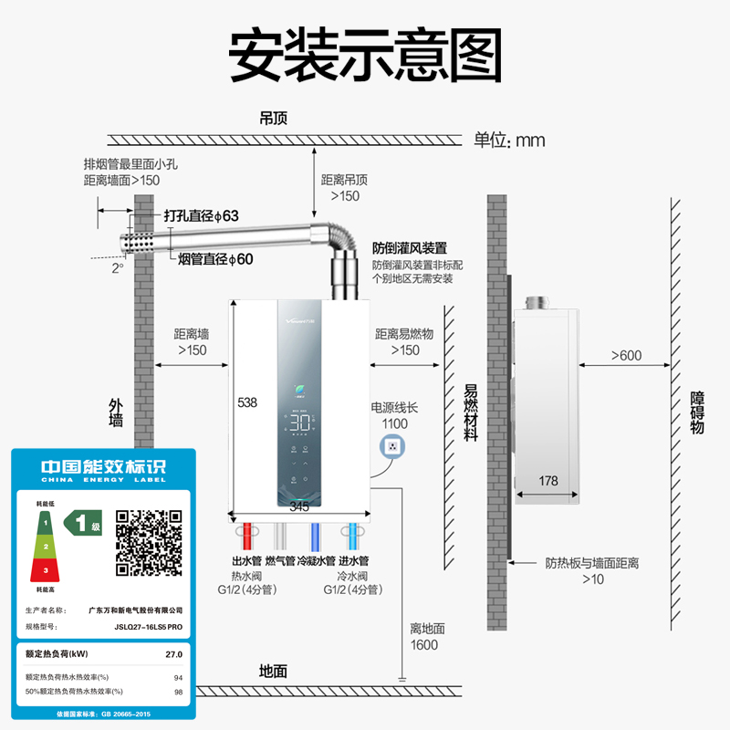 [政府补贴]万和豆蔻一级节能效双增压零冷水天然燃气热水器LS5PRO