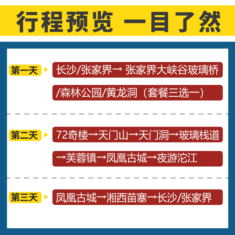 2+1航空舱座|长沙湖南张家界旅游3天2晚跟团游天门山凤凰古城纯玩