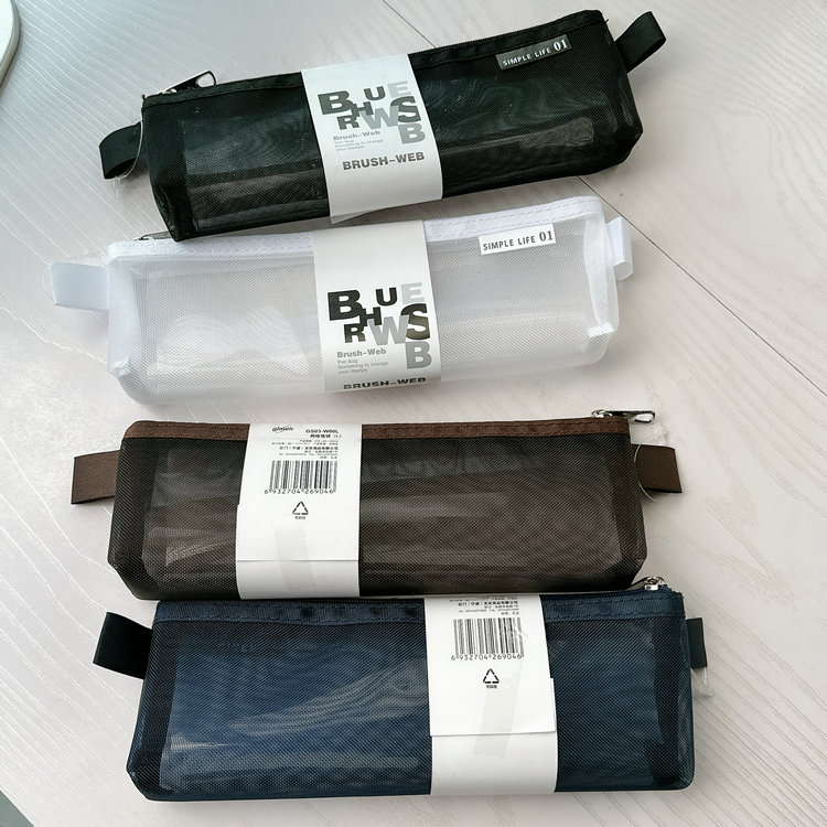 新品细网格笔袋简约学生用收纳袋文具盒可水洗耐脏随身单层小笔袋