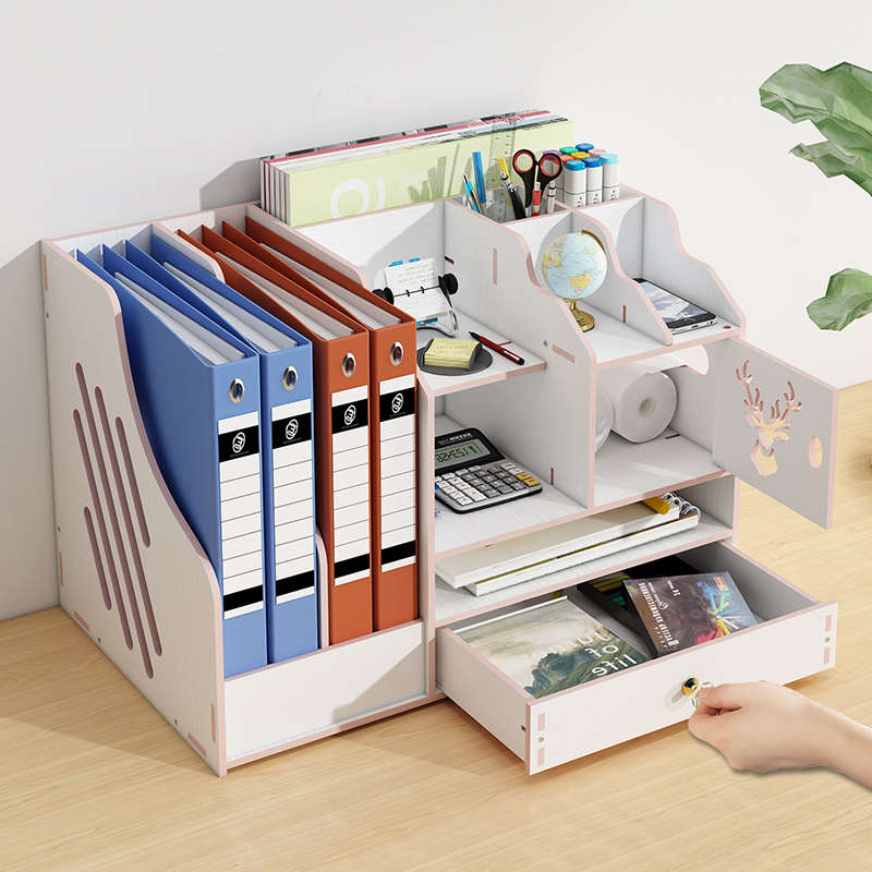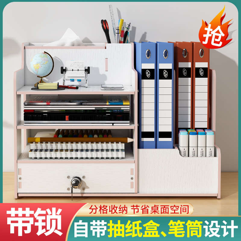 办公桌收纳置物架文件收纳盒办公用品文件架桌面书架多层大容量文件框文件夹A4纸资料档案整理架金属书立架