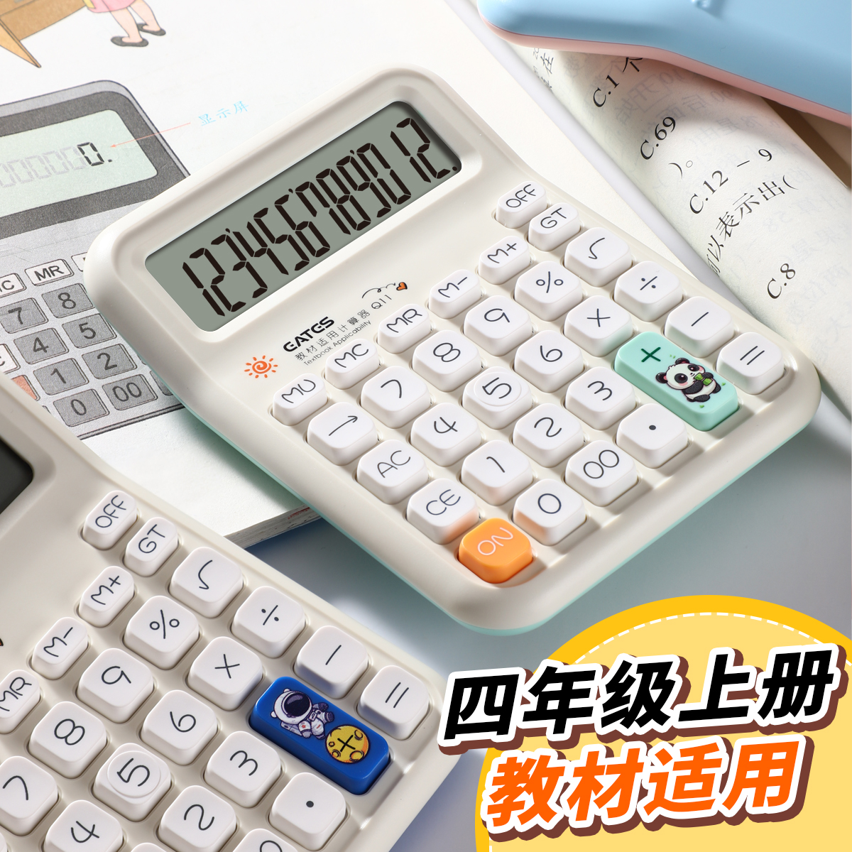 伊达时计算器学生专用小学四年级教材同步同款学习用计算机卡通时尚高颜值考试专用12位数大号高清显示大屏幕
