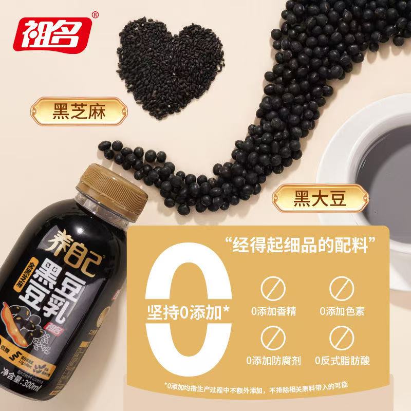 祖名黑豆豆乳豆浆豆奶营养早餐黑芝麻饮料低糖植物瓶装即饮整箱
