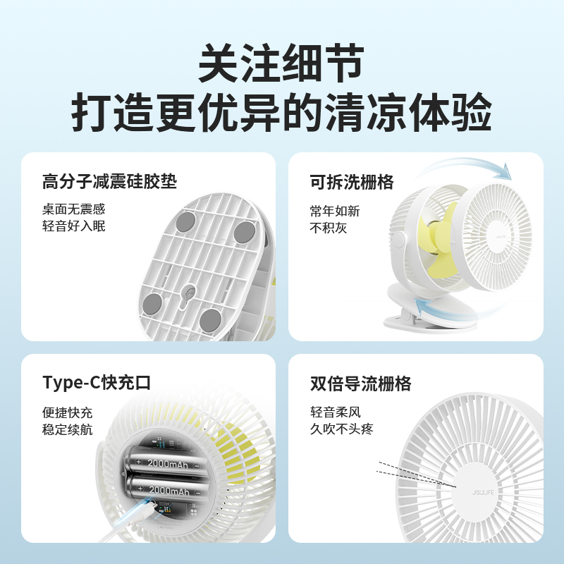 几素usb小风扇夹子型桌面风扇办公室充电风扇夹扇720度旋转4挡风