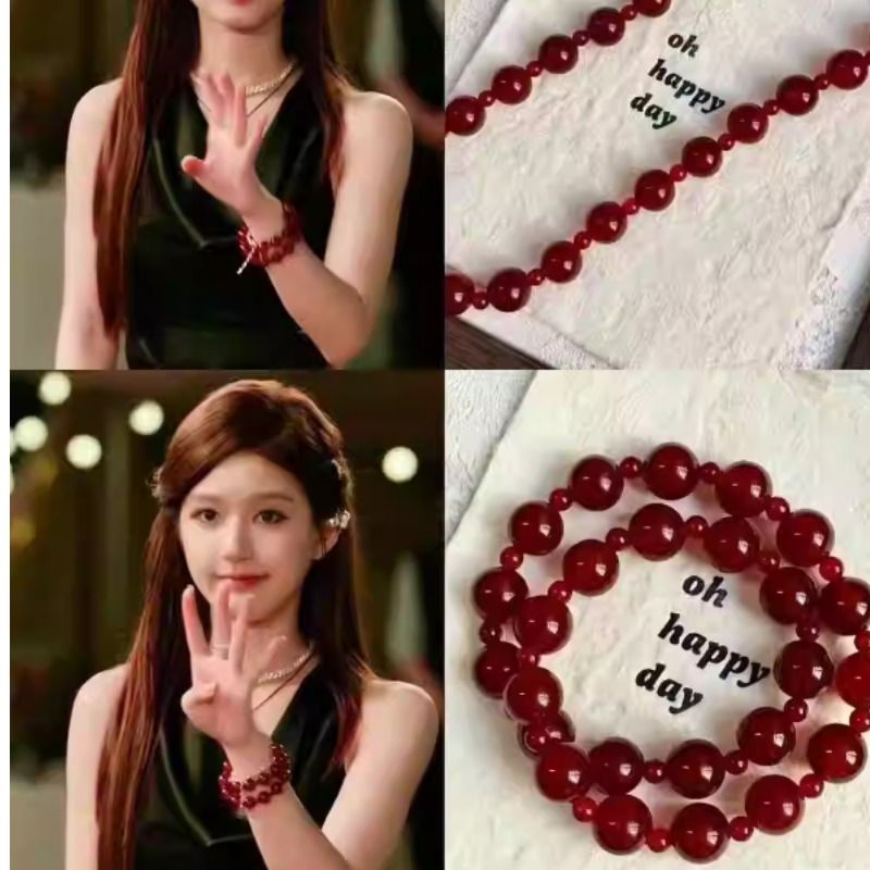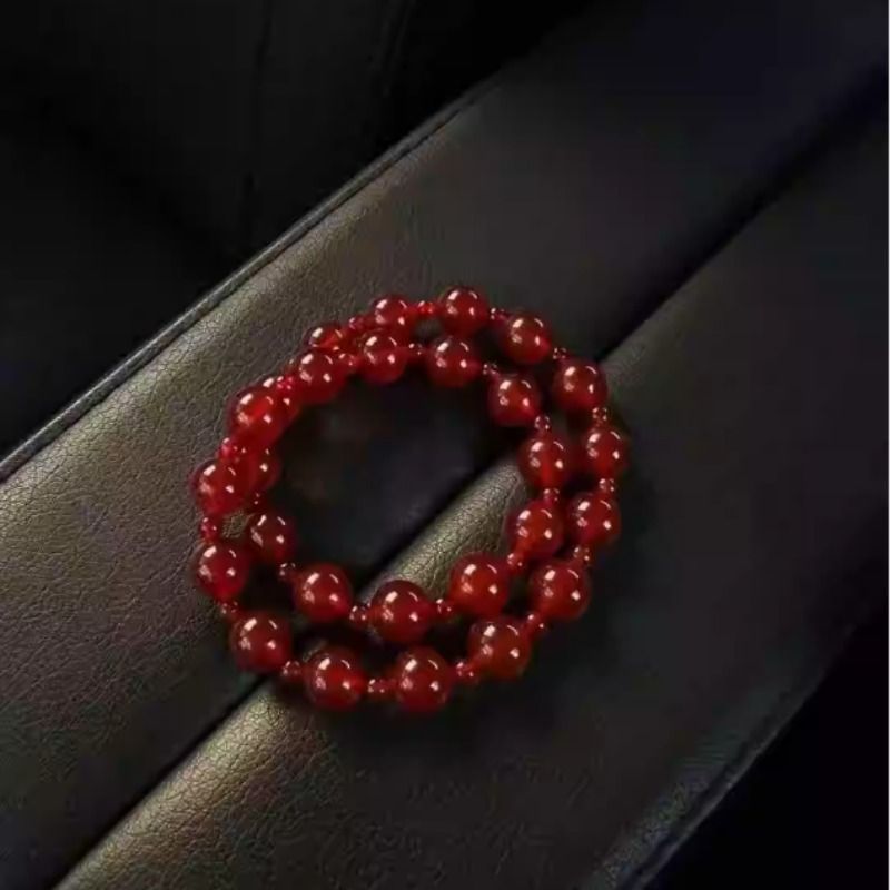 赵露思同款宝石红玛瑙手串高冰透红小众复古简约新中式手串双圈