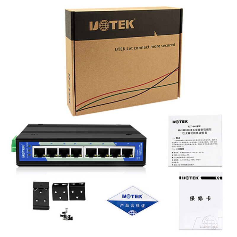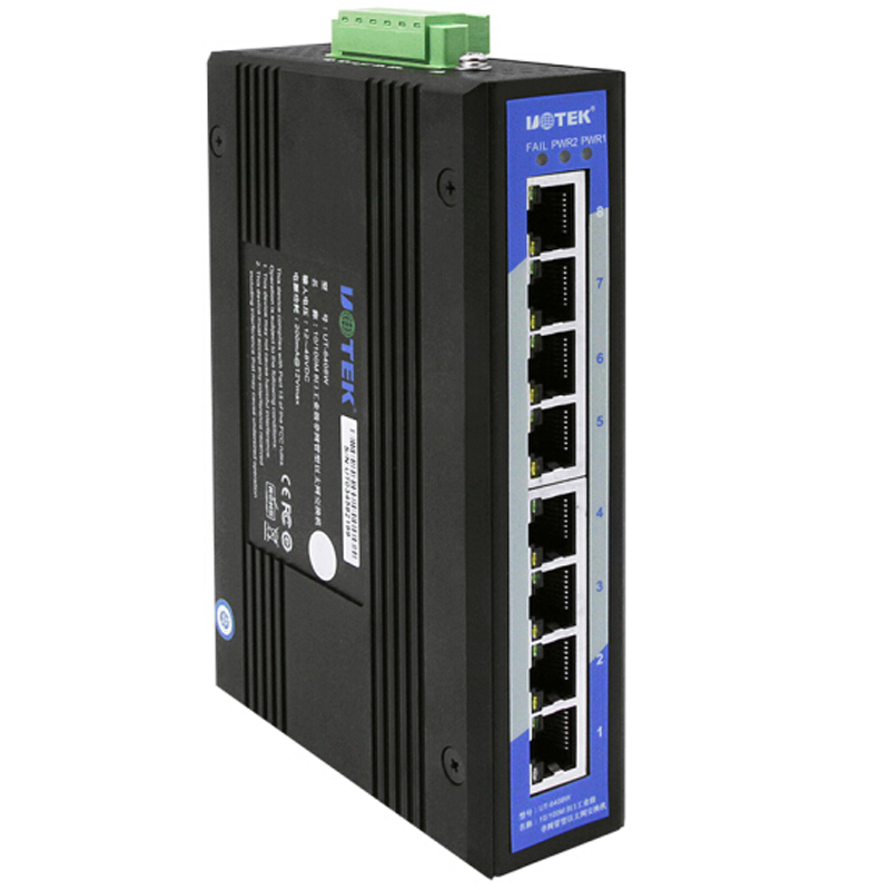 宇泰UT-6408W 百兆非网管型8口网络交换机 纯工业级以太网交换器