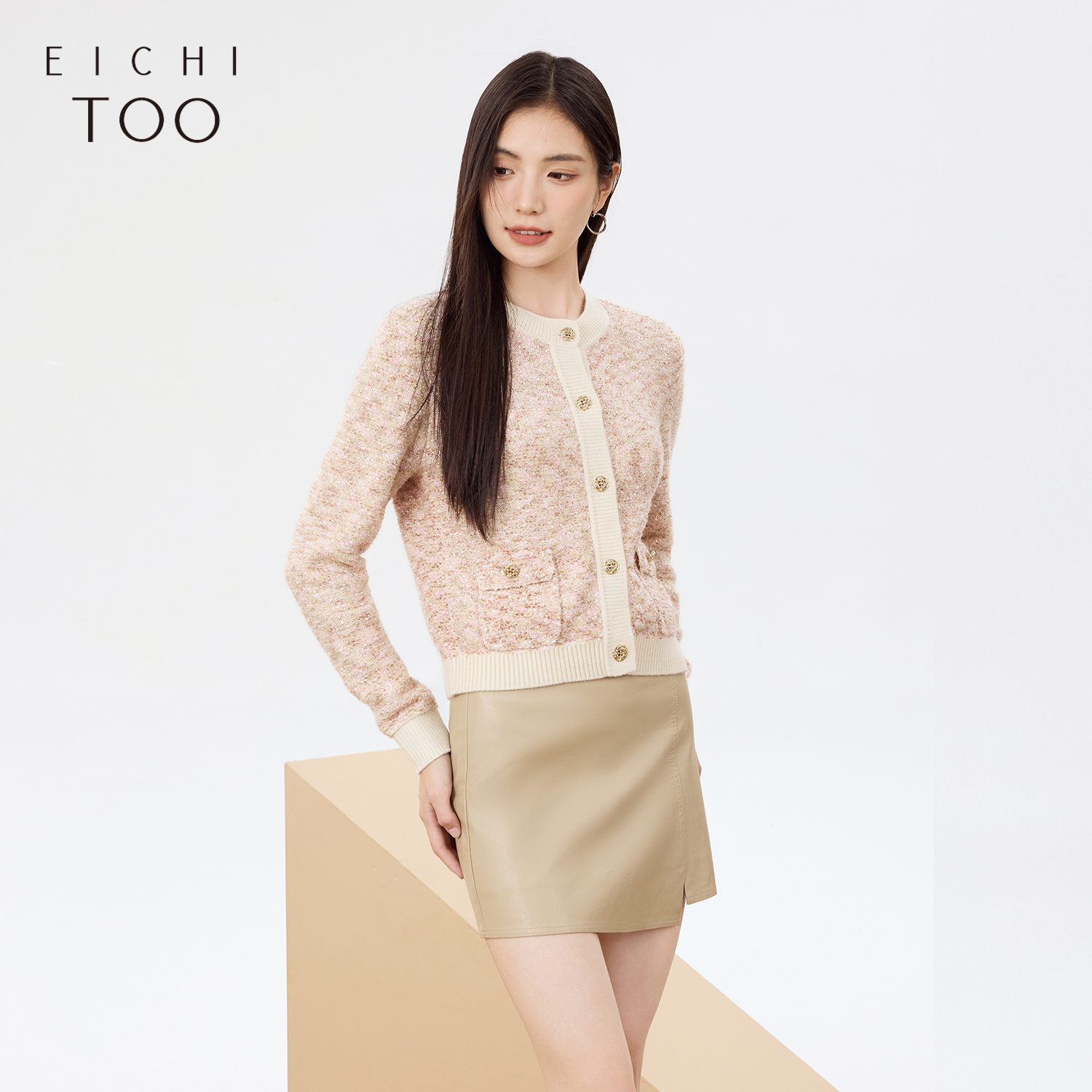 爱居兔法式针织开衫女春秋新款气质圆领外套上衣