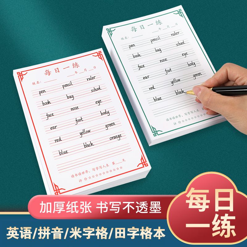 每日一练30字小学生硬笔书法练字书法作品纸田格米格英语拼音本子
