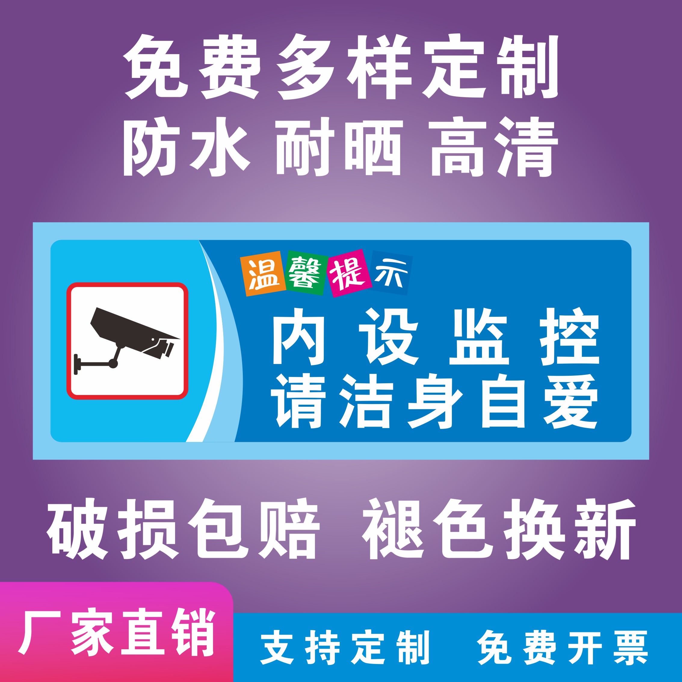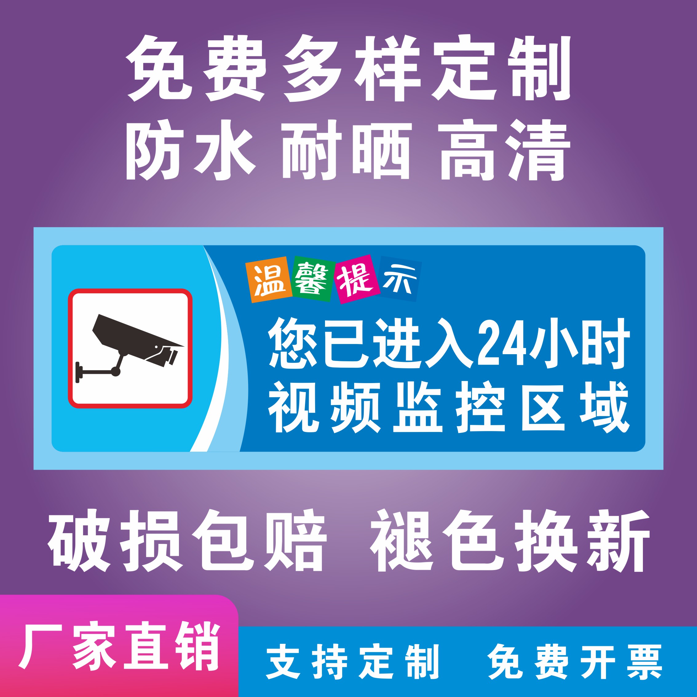 你已进入监控提示牌24小时视频监控区域贴纸墙贴挂牌内有监控请勿随地吐痰乱扔烟头垃圾提示牌标识牌定制定做