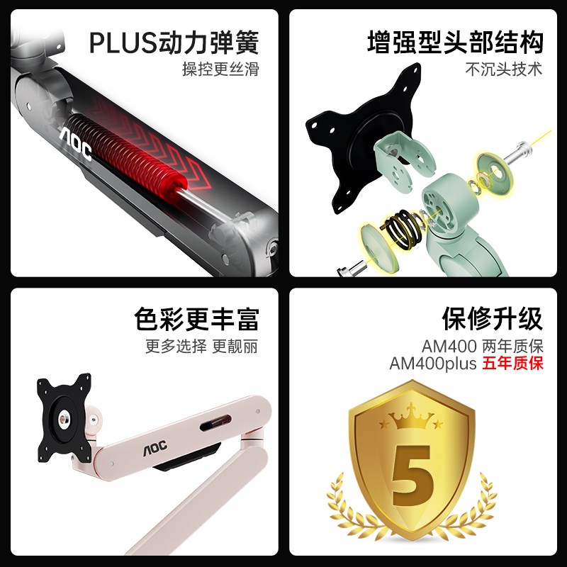 AOC显示器支架AM400机械臂电脑显示屏幕升降悬臂底座VESA双屏PLUS
