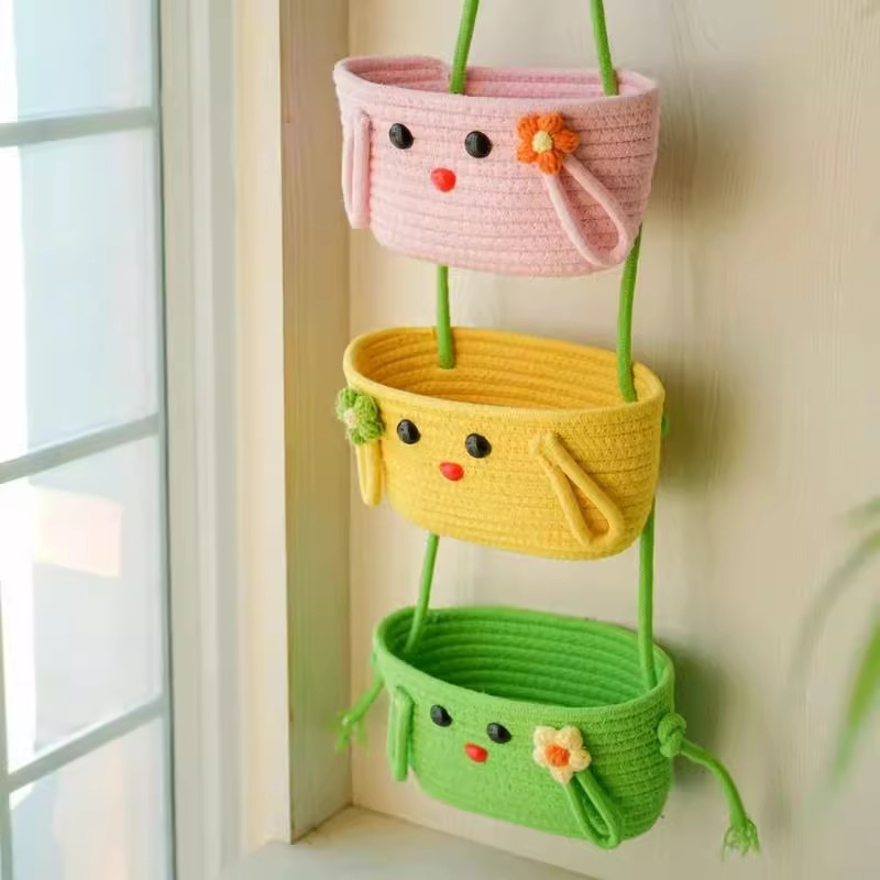 挂袋卡通挂墙收纳篮挂筐宿舍房间悬挂棉线编织墙挂式门后杂物