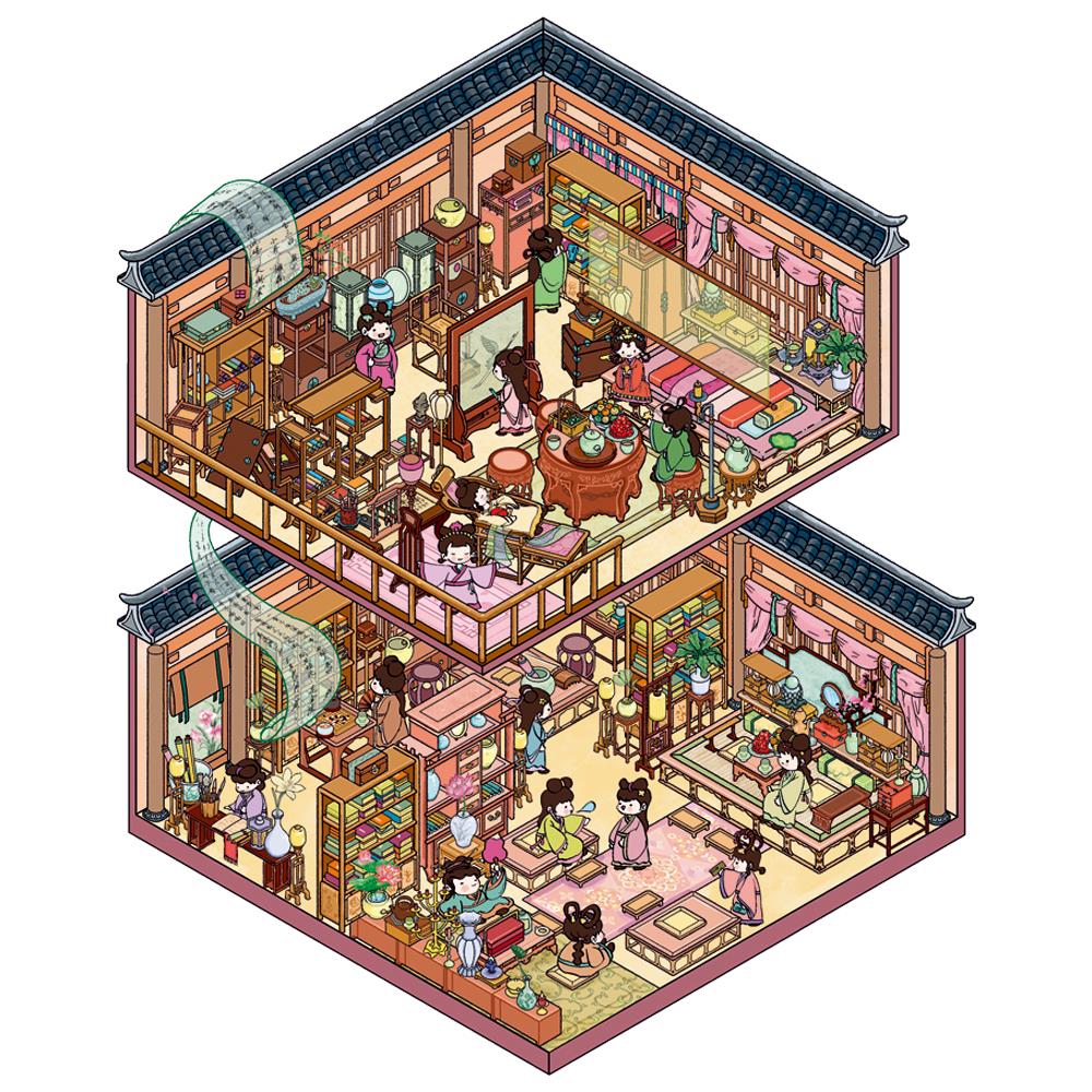 3.0古风少女的居舍造景贴系列2.5D微缩场景DIY解压景观贴贴画