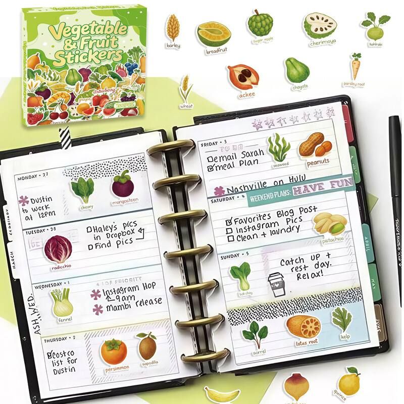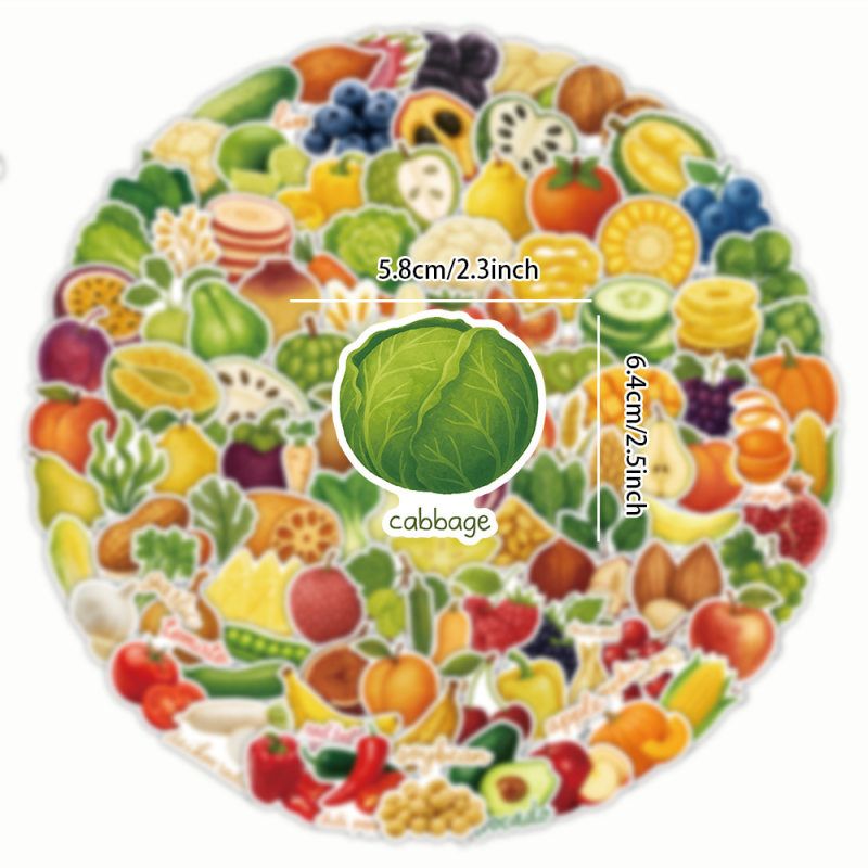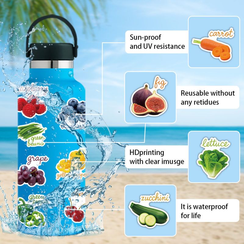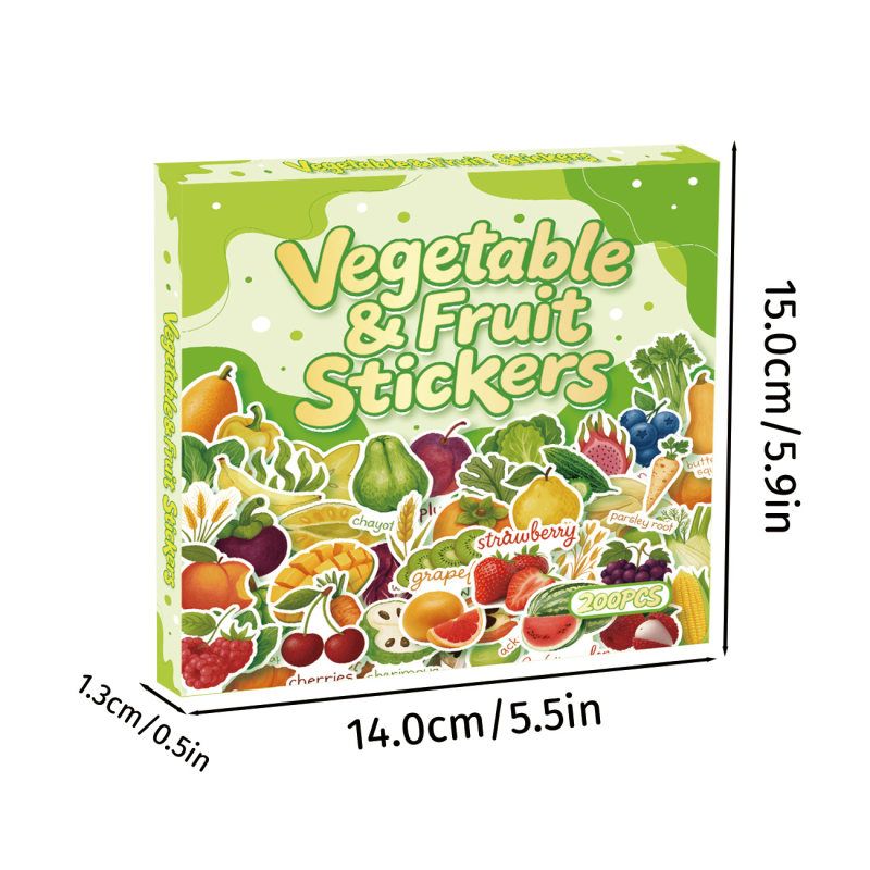 200张蔬菜水果贴纸礼盒英文注释儿童认知知识学习装饰贴画