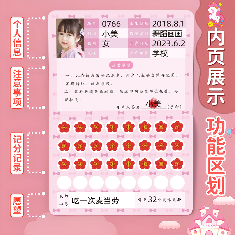 好习惯心愿存折奖励孩子的积分卡阅读存折儿童奖励卡集章卡小红花盖章收集赞本幼儿园记录卡读书小学生激励