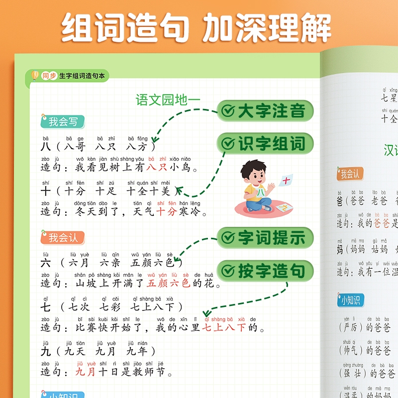 抖音同款】小学生同步生字组词造句本一年级二年级三年级上册下册人教版语文知识大全词语句子阅读晨读练习识字专项训练句型句式本