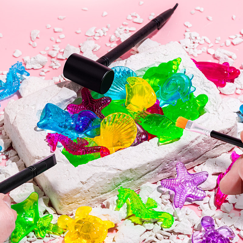 考古挖掘玩具美人鱼化石女孩儿童挖宝石小马宝莉宝宝手工益智礼物
