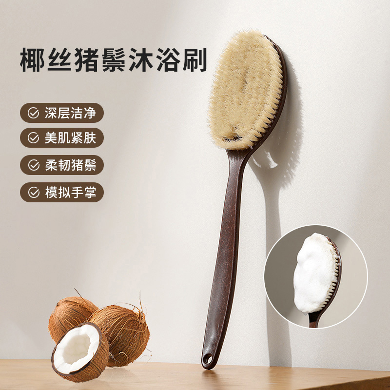 猪鬃毛浴刷长柄洗澡刷沐浴刷干刷身体刷软毛搓背刷搓澡2合1浴球