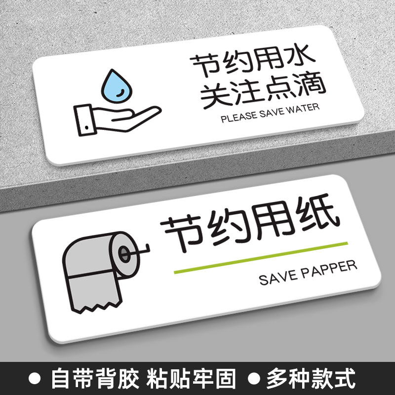 亚克力擦手纸温馨提示牌贴洗手间厕所卫生间节约用纸节约用水感应出水干手器提示牌标识牌定制请保持清洁墙贴