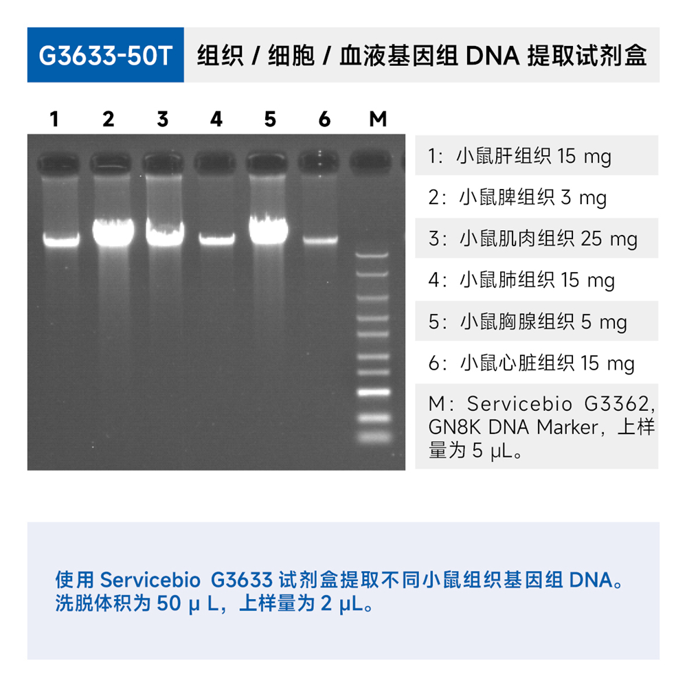 现货 赛维尔生物Servicebio 组织/细胞/血液基因组DNA提取试剂盒 G3633 50T 科研实验