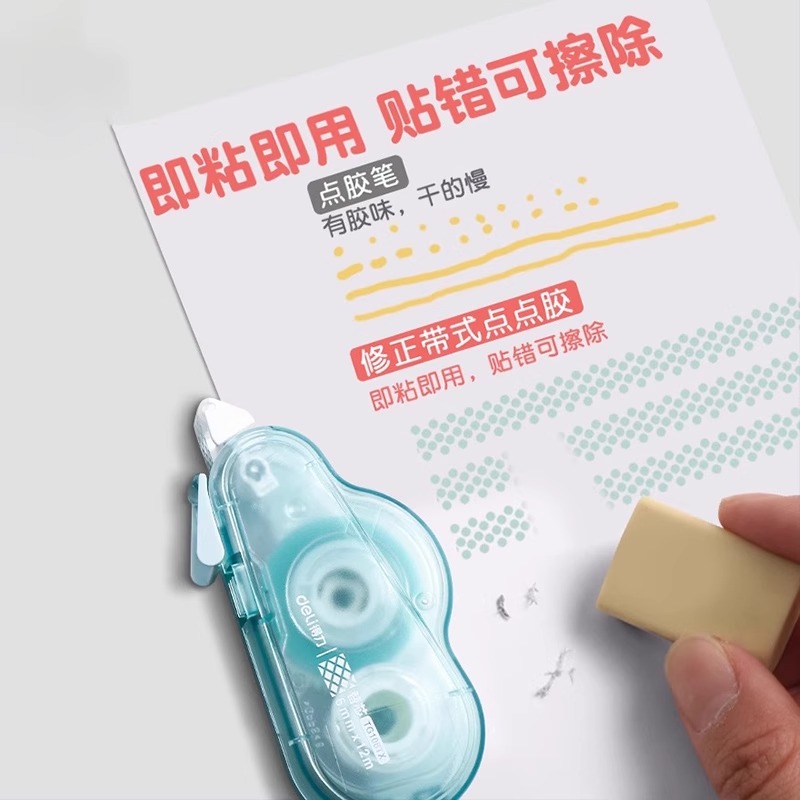 得力点点胶大容量修正带透明双面胶儿童手工手账贴纸高粘度点状双面胶初中生小学生用涂改透明点点胶无痕胶带