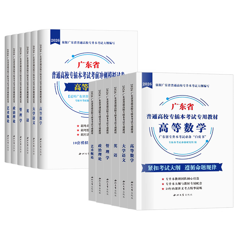 广东专插本2026年教材历年真题库试卷语文高等数学英语政治管理学艺术概论高数复习资料书26广东省成考专升本词汇库课之了专升本