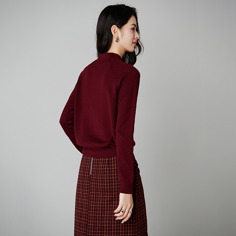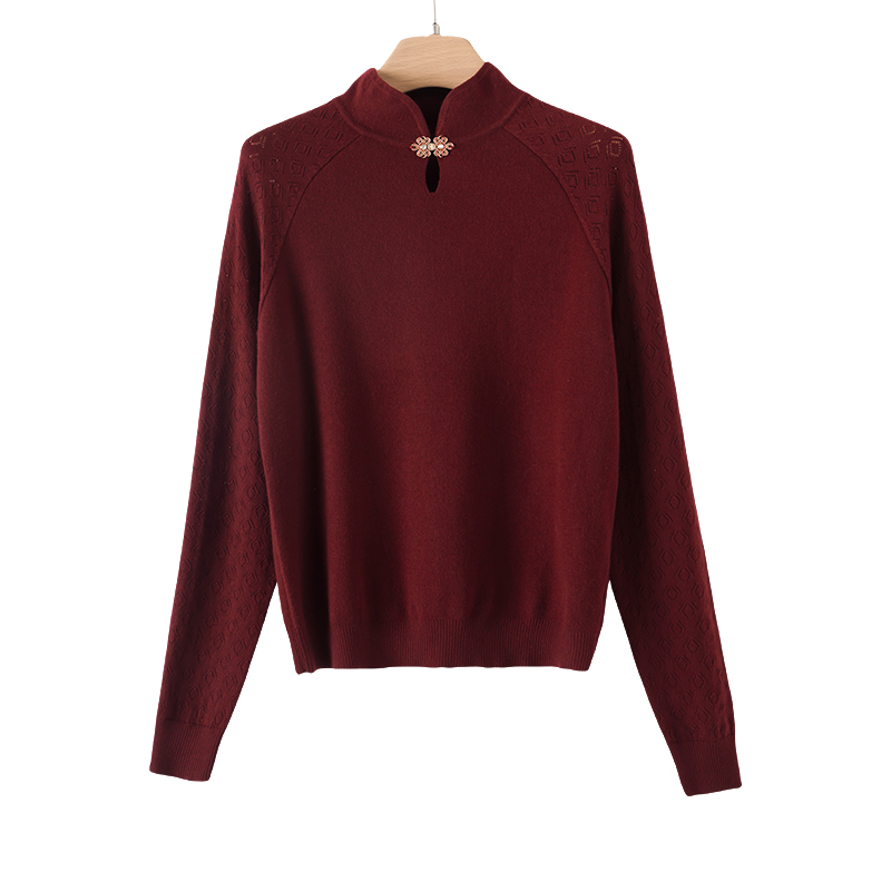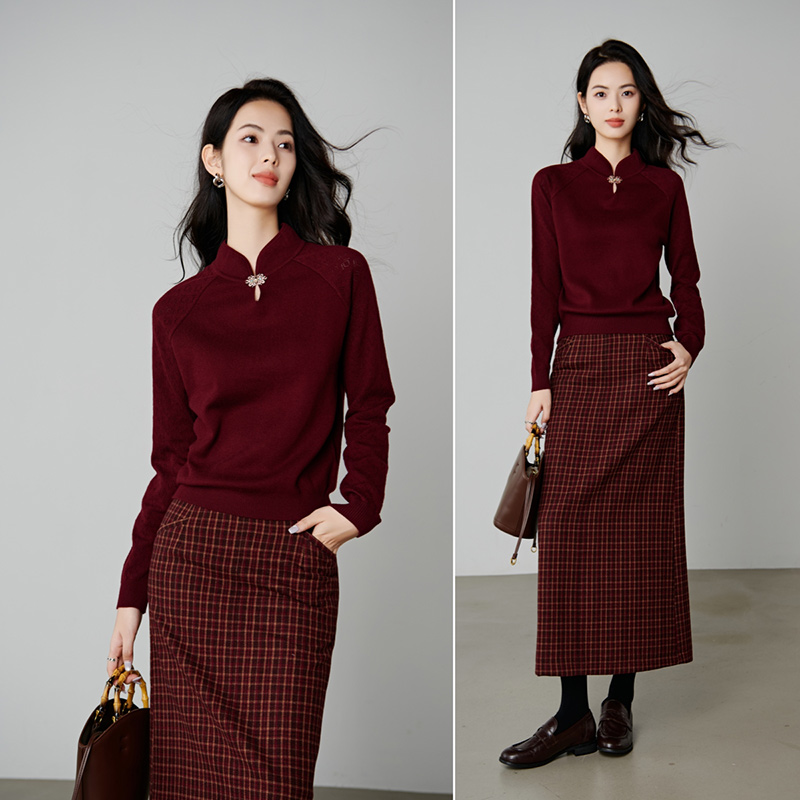 晚白2025年秋冬新款新中式上衣小立领轻国风针织衫含羊毛针织衫女