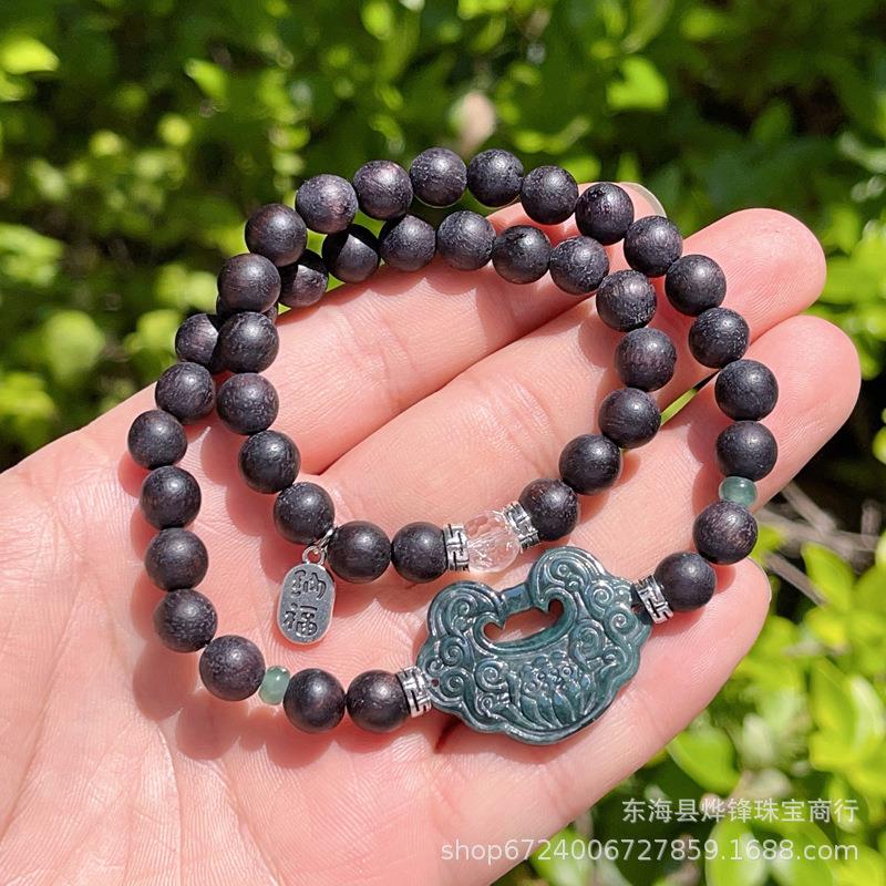 原创设计降真香 味道好闻的文玩 翡翠A货如意锁中式创意手串