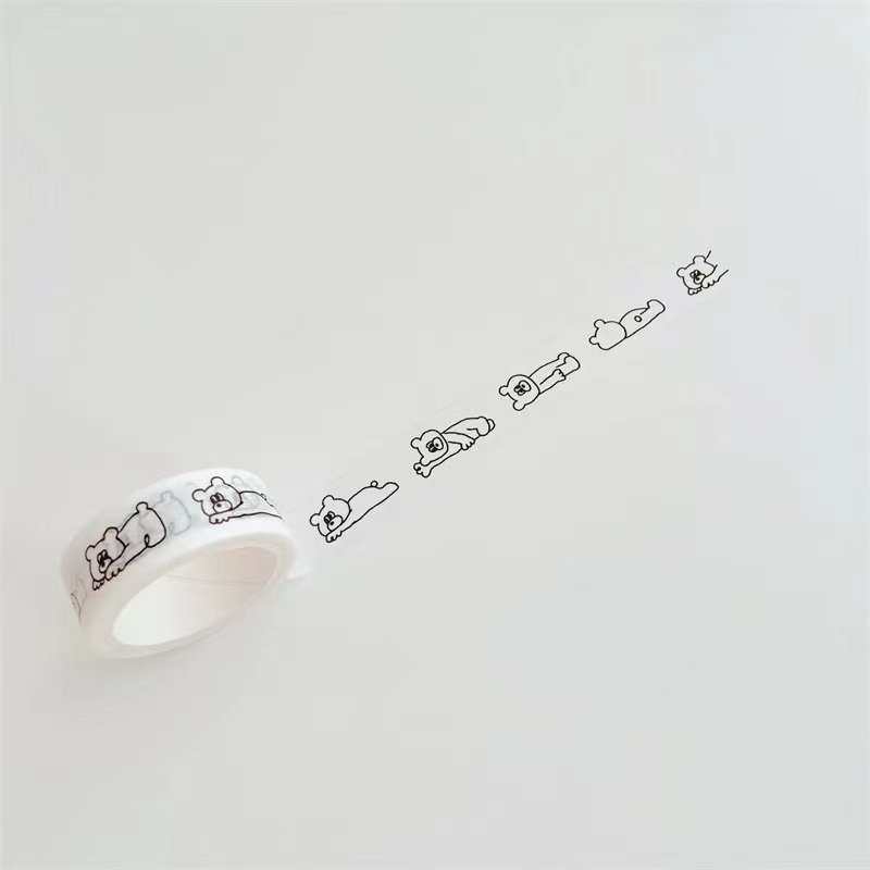 韩国手绘简笔画ins风小猫小狗小熊小丑皮球卡通手帐素材和纸胶带