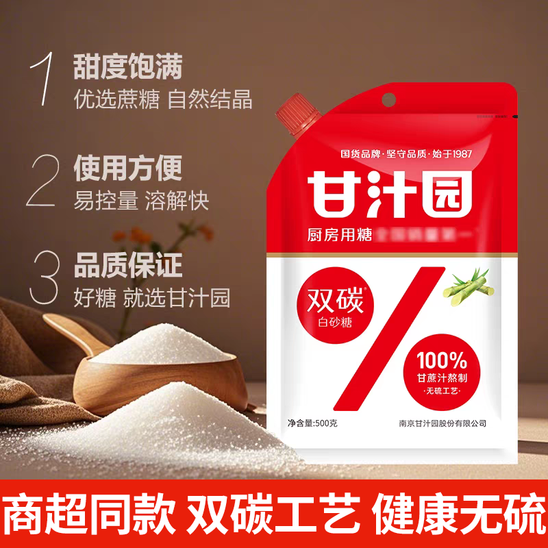甘汁园双碳白砂糖400g正品袋装料细砂糖食用家用烘焙蔗糖优级益母