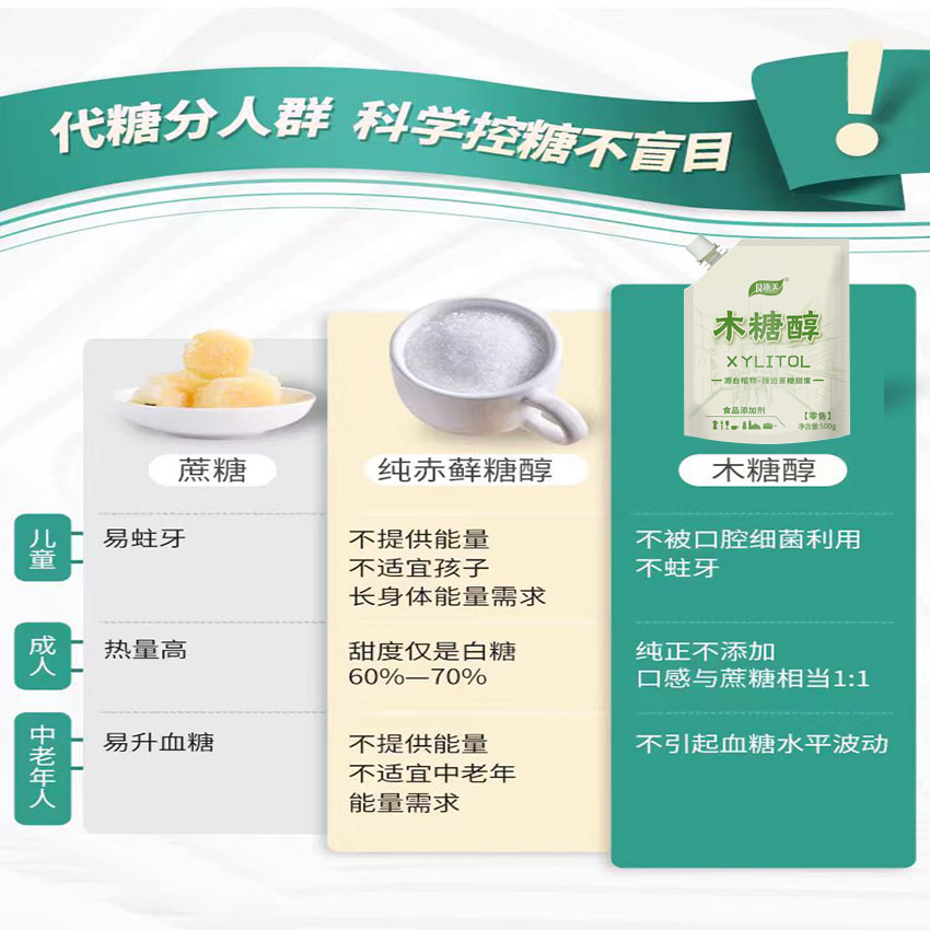 木糖醇白糖糖尿病代糖烘焙原料无糖甜味剂500g蔗糖高纯度食用健康