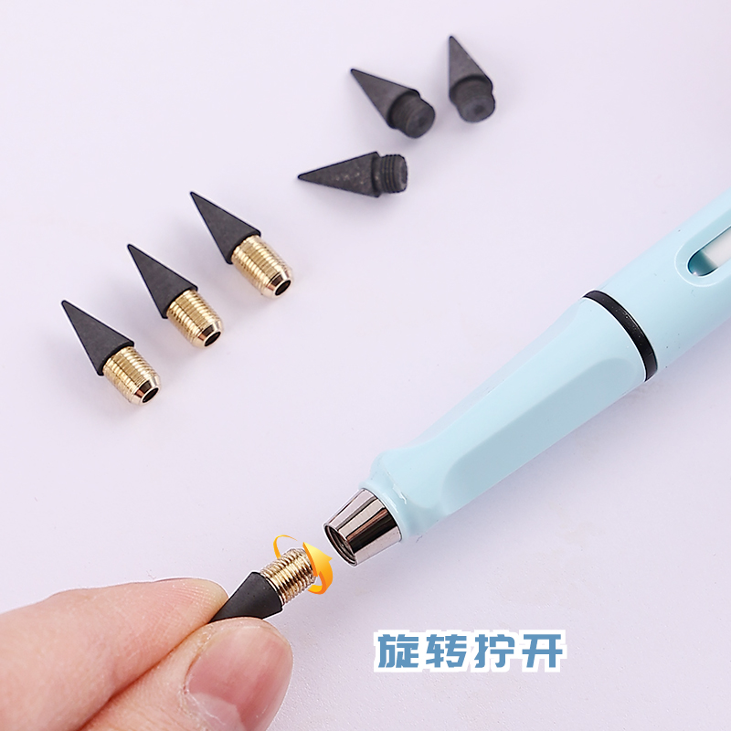 永恒铅笔头替换笔头尖按动合金黑科技写不完不用削金属无墨水学生网红正姿铅笔美术绘画素描不易断铅不脏手HB