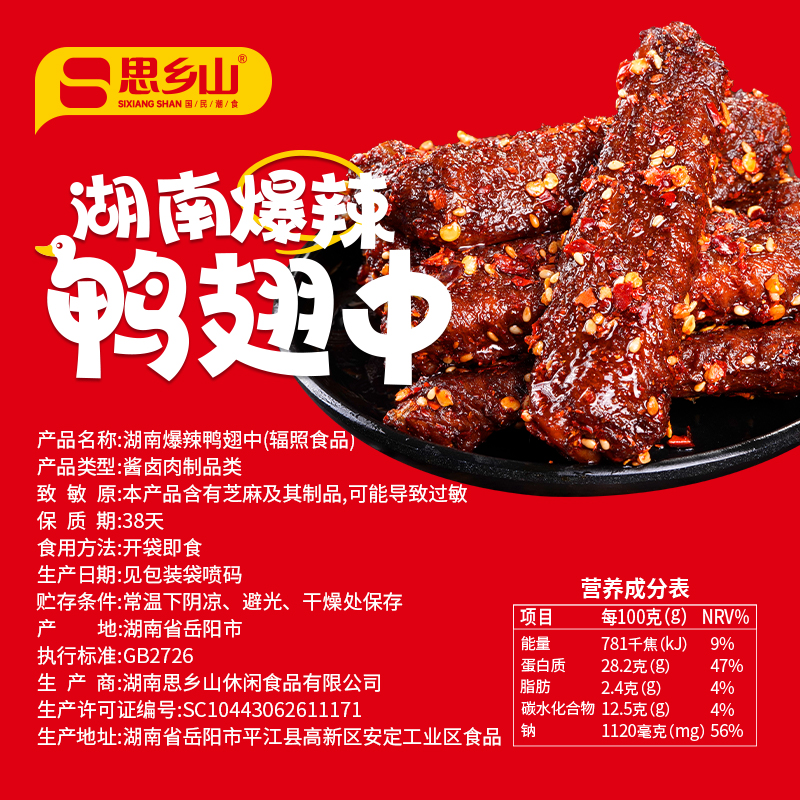 【爆辣鸭翅中】湖南特产香辣爆辣老卤鸭肉制品夜宵充饥追剧解馋零